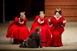 And so from the frippery and fantastical to the cerebral and...well, fantastical. Tom Stoppard is always a bit (actually rather a lot) cerebral, and this play is no different. Which is to say, it is very clever, and repays close attention. I first came across it as a school text many moons ago, and thus had forgotten most of it. But I'd always recalled the first scene, where R & G are flipping coins and 'heads' always comes up. As you may know, the two are minor characters in Shakespeare's "Hamlet". Stoppard has taken them, re-imagined them, and used them as allegories for all kinds of things. What these things might be seem to vary depending upon the audience member. There are lots of references to philosophy, some self-deprecating remarks about England and the English (Hamlet et al, and presumably R & G, being Danish, you'll recall) and a very interesting major character with no name, identified in the program as "The Player".