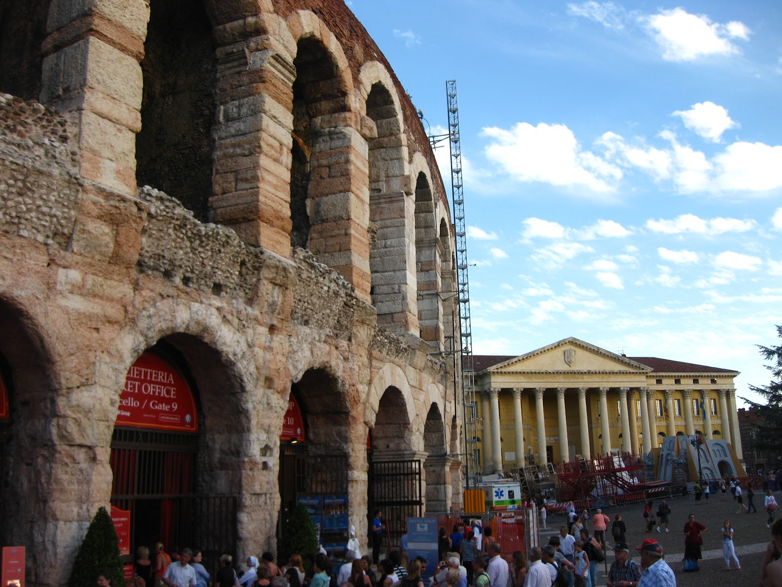 The arena was full. The audience dressed up. Those sitting on the Roman era stone benches had cushions. The moon looked down, as it may well have done on Roman gladiatorial sports and theatrical spectaculars. Oh, Verona!
